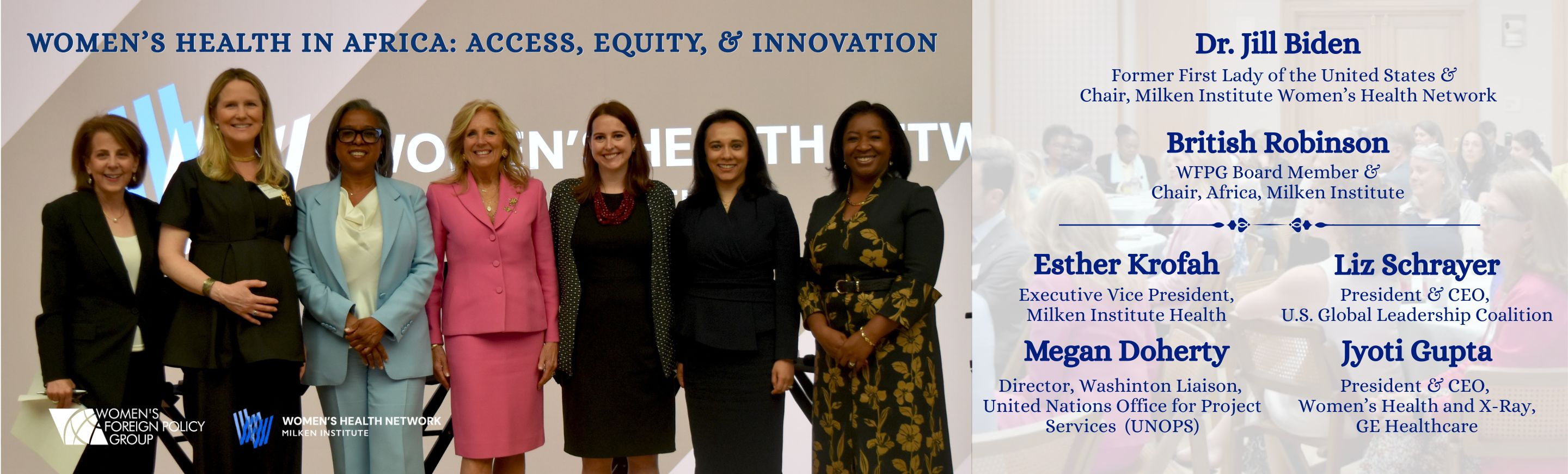 Past WFPG event speakers and stakeholders include Secretary of Commerce Gina Raimondo, Secretary of State Madeleine Albright, Secretary of State John Kerry, Secretary of State Hillary Clinton, Secretary of State Condoleezza Rice, U.S. Trade Representative Katherine Tai, Ambassador to the UN Linda Thomas-Greenfield, Former President of Liberia Ellen Johnson Sirleaf, Former President of Chile Michelle Bachelet, Former President of Ireland Mary Robinson, and Senators Jeanne Shaheen (D-NH) and Deb Fischer (R-NE).